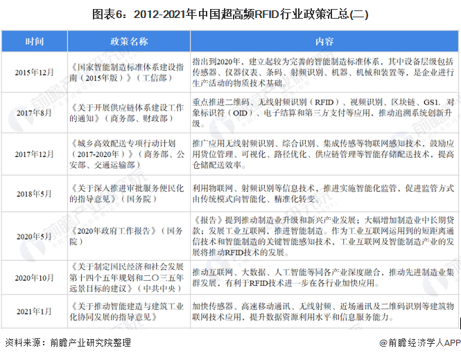 原标题:预见2022:《2022年中国超高频RFID产业全景图谱》(附市场规模、竞争格局、发展前景等) 来源:前瞻产业研究院