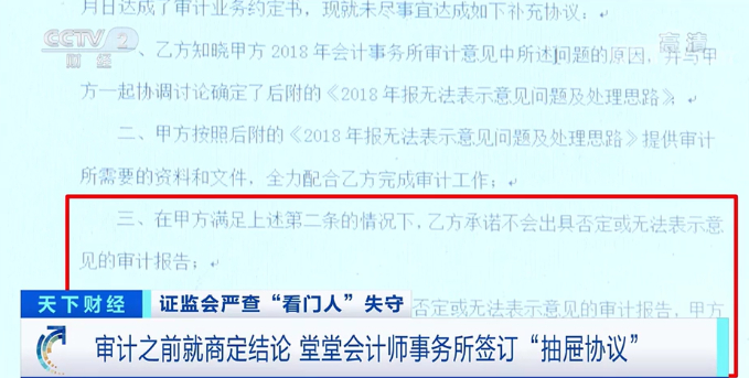 审计之前就商定结论 堂堂会计师事务所签订“抽屉协议”