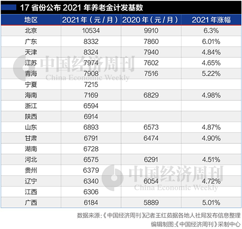 多省份2021年养老金计发基数上涨