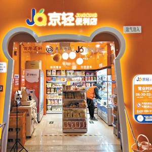 这家便利店从装修风格到商品陈列,都透出一股新潮时尚的气息。店门两侧巨大的“爱北京”“中国造”字样的标识,不动声色地吸引着过往乘客的目光。记者注意到,甚至有从地铁站东头入口进站的乘客径直穿过站厅,来到这家便利店购买商品。