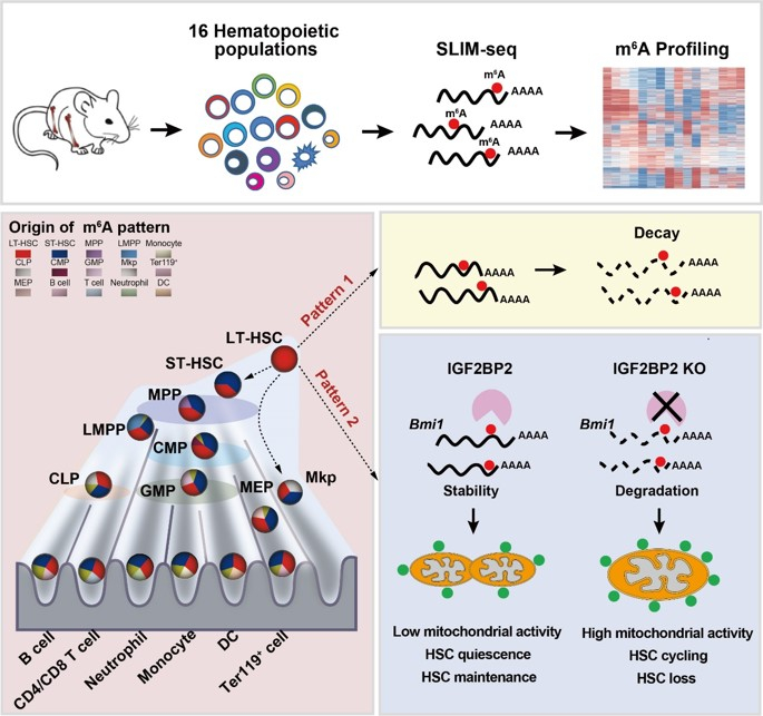 科学发现:绘制了血液系统m6A修饰图谱并解析了其变化规律;阐明了IGF2BP2维持造血干细胞功能的作用与机制。揭示了造血干细胞功能维持的新机制,为深入探索生理病理情况下血液生态的表观转录调控机制奠定了理论基础。