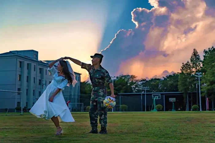 右手敬礼左手牵你