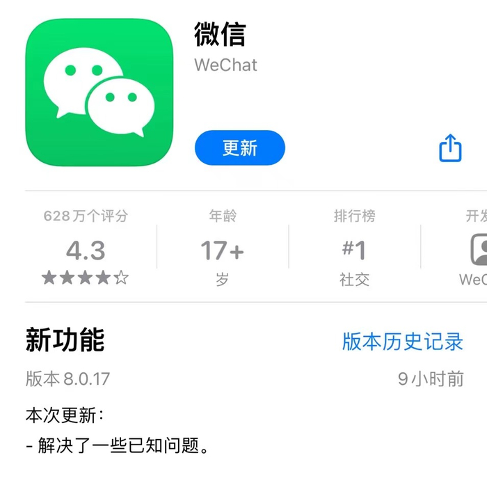 1月15日消息,iOS微信版本更新至8.0.17,新增功能支持语音暂停后继续播放。这意味着60秒长语音终于不用再从头听到尾了。