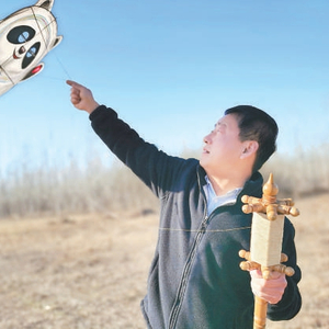 非遗传人制作“冰墩墩”风筝