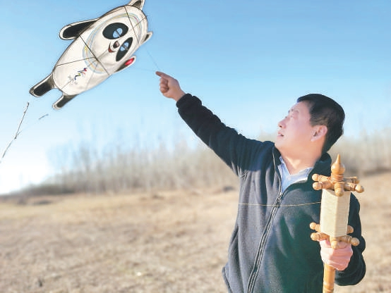 赵艳强巧手制作的“冰墩墩”乘风起飞。