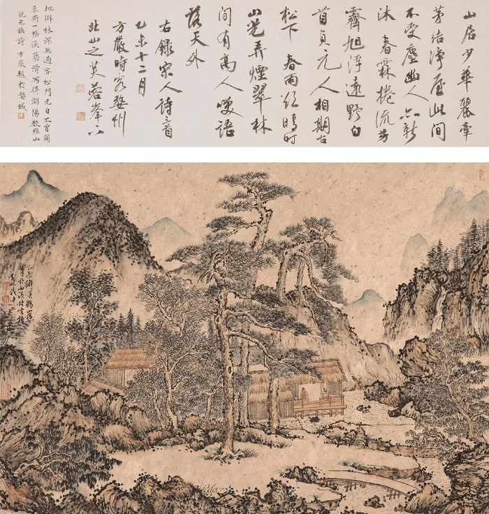 夏山图 纸本设色 51×70cm 2015 年;方严题诗堂 纸本 21×70cm
