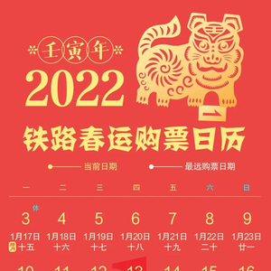 1月16日,1月30日(腊月二十八)火车票正式开售,当天也是春节假期前最后一个工作日。今年铁路春运时间为1月17日(农历十二月十五)至2月25日(正月二十五),共计40天。