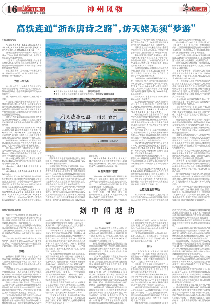 1月8日,杭台高铁正式开通,终结了浙江嵊州、新昌、天台等县市不通铁路的历史,由北向南串联起唐诗里的山水名胜,让李白的千年梦境照进了现实。