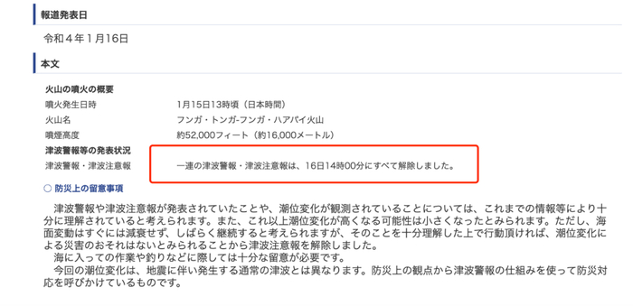 不过,最新消息显示,当地时间16日下午2点,日本气象厅已经解除了预警。