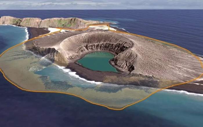 ▲Hunga Tonga火山岛。自然资源部海啸预警中心供图
