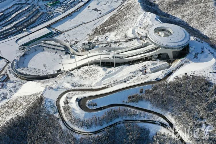 2021年3月13日拍摄的北京2022年冬奥会张家口赛区国家跳台滑雪中心“雪如意” 。