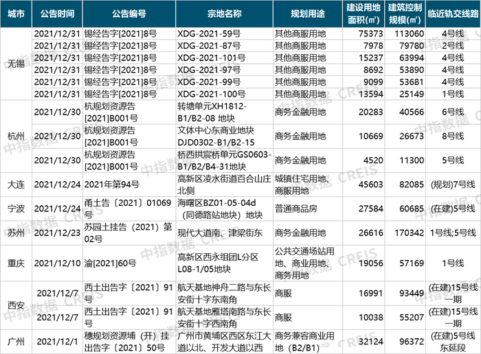 挂牌动态:多个城市推出轨交周边综合/住宅/商办用地