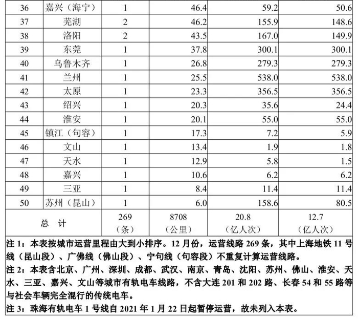中国城轨协会:截至2021年12月31日中国内地50城投运城市轨道交通线路