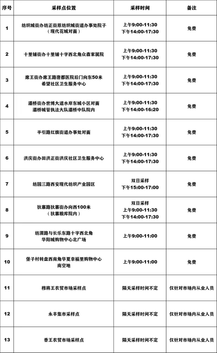 灞桥区疫情防控指挥部办公室要求,各街道与行业主管部门要密切配合,及时提醒辖区各复工企业和保供门店,由复工企业和保供门店根据各自实际情况,组织员工持48小时核酸阴性证明和工作证明就近选择采样点进行核酸检测,以上各核酸检测采样点根据疫情形势变化予以适时调整。