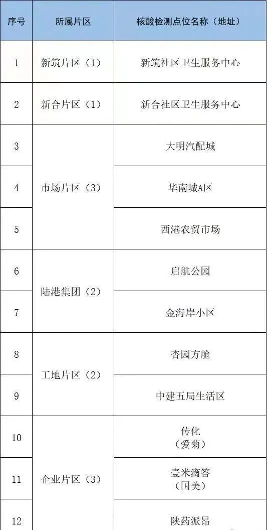 结合当前疫情防控总体形势,为进一步做好复工复产和社会保供等方面保障工作,满足本区参与疫情防控、生病就医以及急需工作人员核酸检测需求,本着方便、就近的原则,结合曲江新区实际,在全区各中心社区和小区新设置点位15处,进行核酸检测采样工作。现就采样点设置有关情况通告如下: