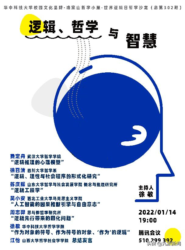 为庆祝世界逻辑日(World Logic Day),2022年1月14日晚19:00,校园文化品牌“喻家山哲学小屋”在腾讯会议平台举办专题学术沙龙活动,主题为“逻辑、哲学与智慧”。华中科技大学哲学学院副院长徐敏教授主持,参会人数130余人。