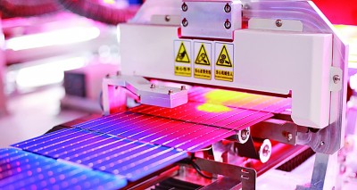 合肥一家太阳能科技有限公司生产车间内的光伏板自动化生产线。新华社发
