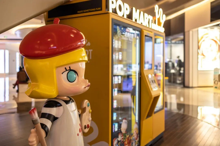 在泡泡玛特零售门店,消费者能看到一个亚克力架里五彩斑斓的娃娃像模特一般被展示出来,门店店员会和蔼可亲地走过来说,“对不起,这一系列的娃娃正在补货中”。