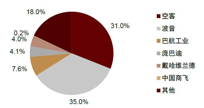 图表:全球航空飞机订单按制造商分布