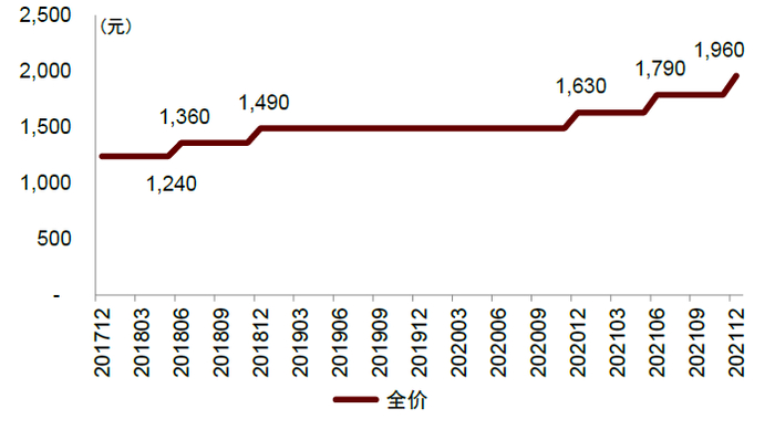 图表:京沪航线全价变化(2017年12月-2021年12月)