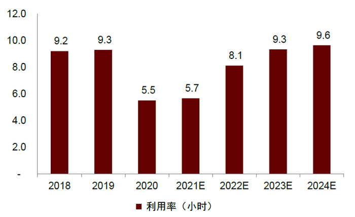 图表:我们预计行业飞机日利用率将逐渐回归至疫情前水平