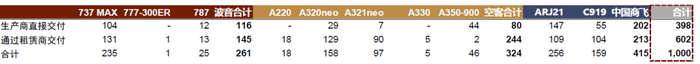 飞机订单有多少:存量订单共1000架,制造商:租赁商来源约为4:6