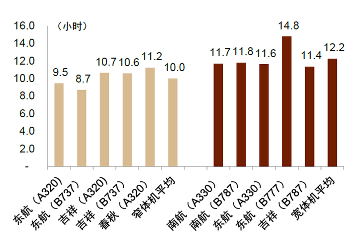 图表:主要航司飞机日利用率(2019)
