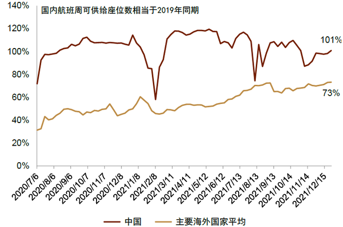 图表:海外国家供给恢复情况(国内线)