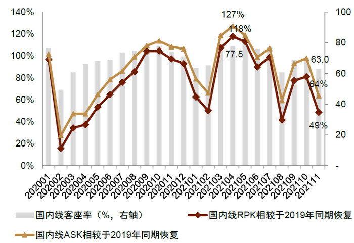 注:2020年ASK、RPK同比分别下行42%、46%,未显示于图中 资料来源:万得资讯、中金公司研究部