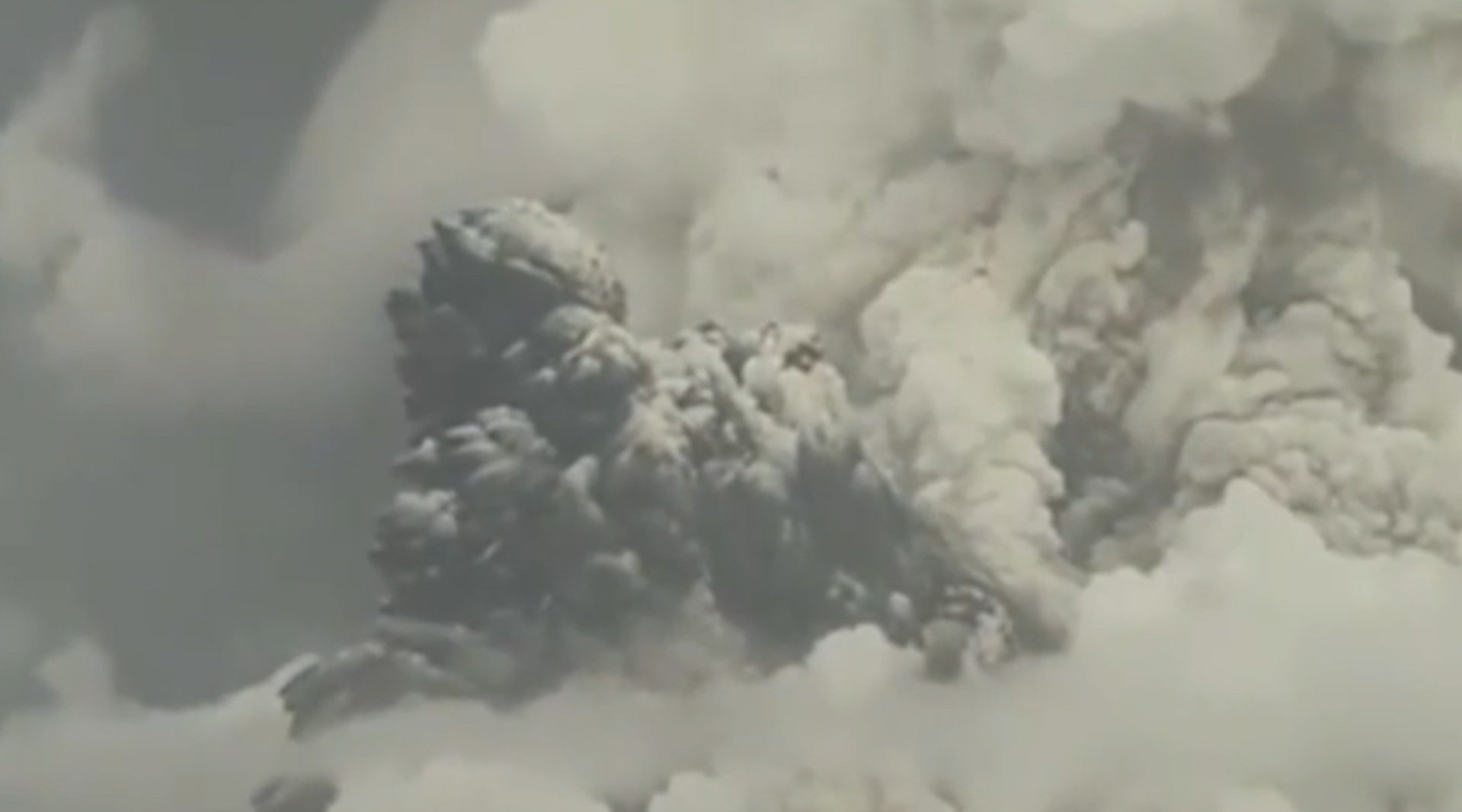 卫星照片显示,火山灰、蒸汽和气体在当地太平洋蓝色的海面上空升腾而起,巨大的声响远在美国阿拉斯加都可以听到。