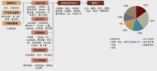 图表:LED智能氛围灯产业链梳理及成本拆分(2020年)