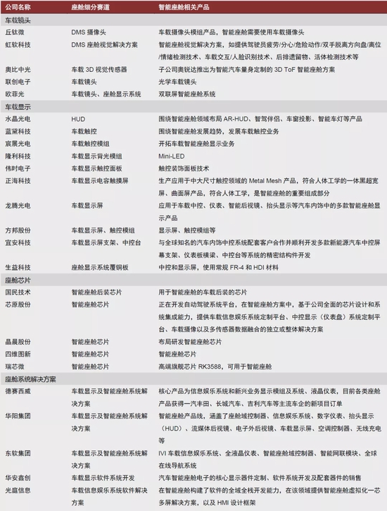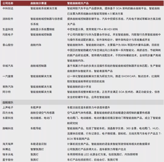 图表:智能座舱相关公司梳理