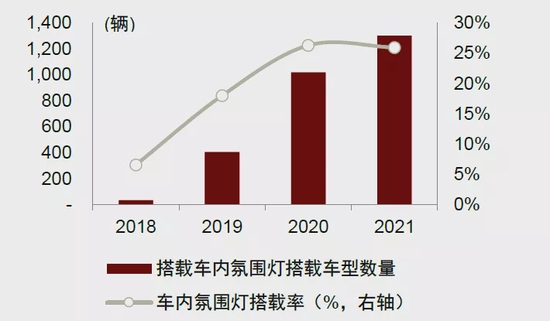 图表:氛围灯的新车配置渗透率提升