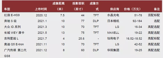 图表:搭载AR-HUD的车型