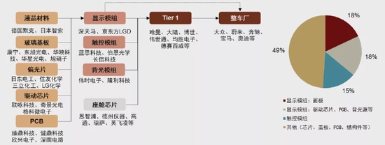 图表:车载显示系统产业链硬件梳理及成本拆分(2021年)