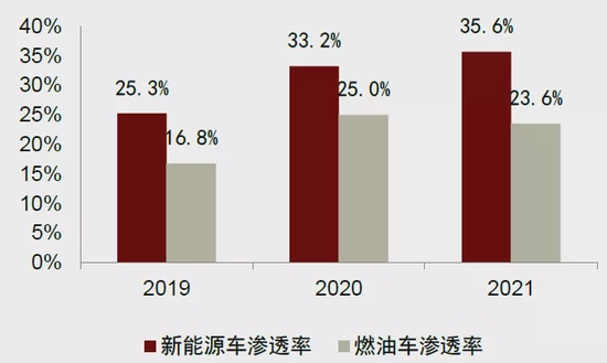 图表:氛围灯在新能源汽车中的渗透率高于燃油车