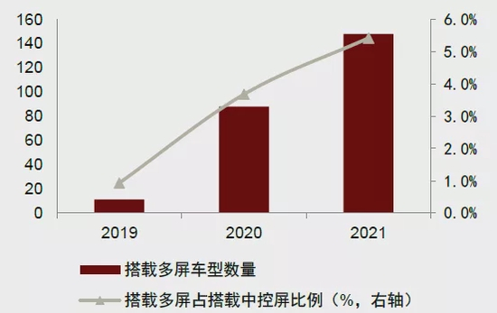 图表:新车型搭载多屏数量及占比情况