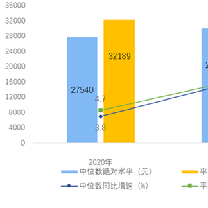 2021年,全国居民人均可支配收入中位数29975元,增长8.8%,中位数是平均数的85.3%。其中,城镇居民人均可支配收入中位数43504元,增长7.7%,中位数是平均数的91.8%;农村居民人均可支配收入中位数16902元,增长11.2%,中位数是平均数的89.3%。