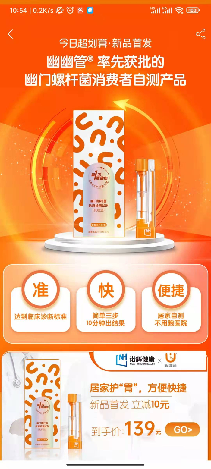 谈及在阿里健康首发的原因,诺辉健康销售副总裁李岩表示:“中国每年新发胃癌患者占全球42.6%,但国内胃癌早期诊断率低于20%,胃癌患者5年生存率仅为27.4%。幽门螺杆菌是目前预防胃癌最重要的可控危险因素,幽幽管通过消费者自测把筛查场景下沉到家庭。我们很高兴此次携手阿里健康,共同助力消费者升级健康管理理念,从被动到主动,从治病到治未病。”