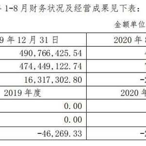 截止到2020年8月31日评估基准日,重庆荣丰经审计后的资产总额为4.91亿元,总负债为7.43亿元,净资产为-2.52亿元,2020年前8个月净利润为-2.68亿元(如下图所示);虽然资不抵债且大额亏损,但采用资产基础法评估后,股东全部权益价值为6.10亿元,评估增值8.62亿元,出现了高溢价。