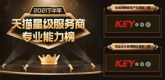 在发布星级服务商榜单的同时,天猫还同期公布了《2021年下半年天猫星级服务商专业能力榜单》,凯诘电商的全域消费者资产运营和货品全生命周期运营能力进入服务商专业能力榜单。