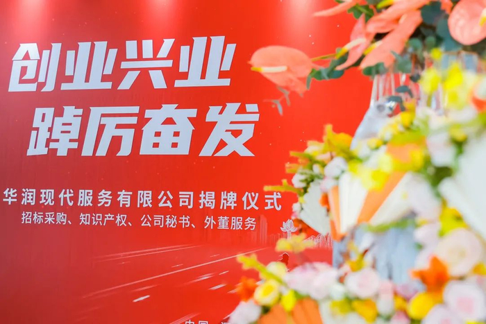 王祥明董事长等集团领导共同为公司揭牌。仪式由华润现代服务有限公司总经理张立强主持,集团办公室、财务部、审计部、法律合规部、群众工作部等职能部室相关负责人及在深专职外部董事代表应邀出席,共同见证这一刻。