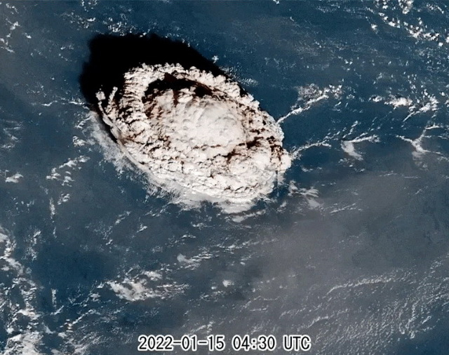 位于南太平洋岛国汤加洪阿哈阿帕伊岛的火山于2022年1月15日猛烈喷发,火山灰柱直径约5千米、高20千米,笼罩在火山上空。这可能是30年来规模最大的一次火山爆发。