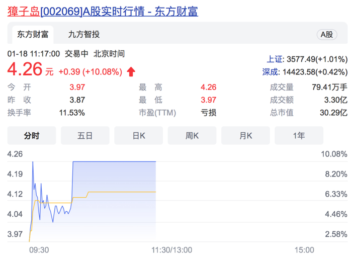 尽管如此,獐子岛却在二级市场展现出久违的强势,股价一路高开高走,开板两分钟触及涨停板。