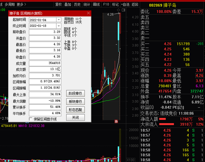 放长一点来看,进入2022年以来,獐子岛一直保持着喜人涨势。在最近11个交易日中,獐子岛股价从3.32元/股附近已涨至4.26元/股,区间涨幅为29.48%,最大涨幅达到34.81%。