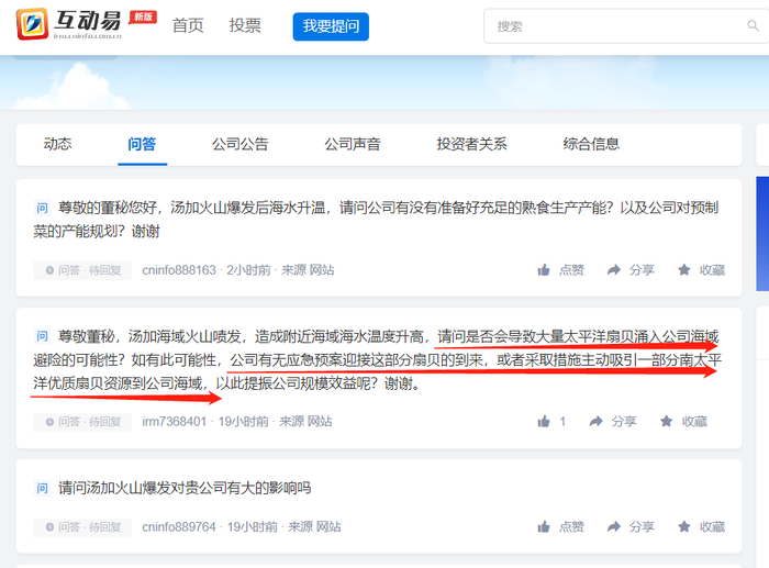 4.7万股东捡一个涨停!汤加火山爆发居然有人提问扇贝是否回流獐子岛,公司:尚不清楚