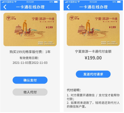 宁夏旅游一卡通由宁夏回族自治区文化和旅游厅监督指导,宁夏旅游投资集团有限公司、宁夏旅游协会执行实施,致力于联动景区资源,打造宣传平台,促进全域旅游快速发展,为广大群众提供惠民、便民、利民的出游体验。宁夏旅游一卡通可在一年有效期内免费进入宁夏境内外60多家景区。宁夏旅游一卡通售价199元/张,持卡者进入景区时可凭一卡通二维码、验证绑定身份证、人脸识别等多种便捷方式入园。全国游客都可办理,即买即用。