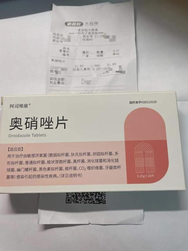 *老百姓大药房棕榈路店售卖的“奥硝唑片”