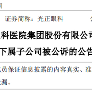 1月17日,光正眼科医院集团股份有限公司发布了一则关于下属子公司被公诉的公告。