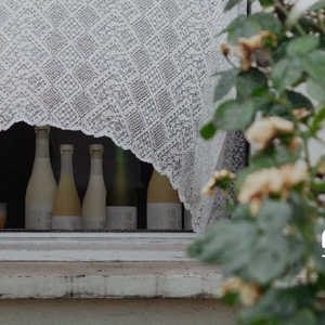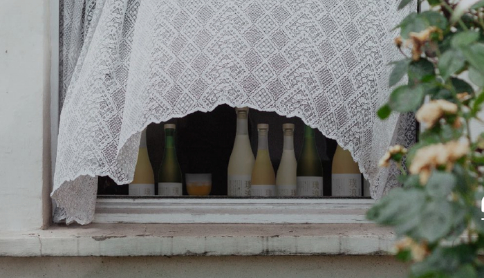 第一瓶是「青茶萃梅」。随着明亮的酒液汩汩流出,清爽的青梅香弥散开来,以甜为主线,紧实的果酸相辅,佐着一点点绿茶的鲜爽,让刚吃过蜜糖夹心薄烤饼的嘴巴立马变得清爽起来。